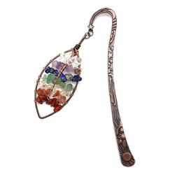 Antique Cobre Metal Bookmark Beading Bookmarks com Handmade 7 Chakra Cura Cristais Árvore da Vida Tumbled Gemstones Chips