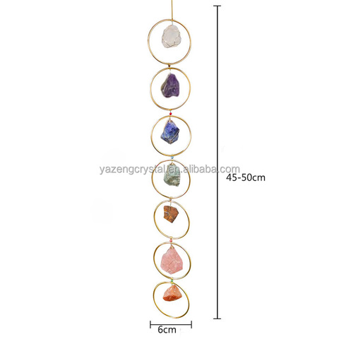 Pingente de pedra preciosa suspensa de pedra bruta de cristal natural atacado com sete chakras