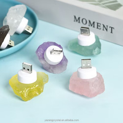 USB colorido cristal natural quartzo pedra bloco ametista natural quartzo rosa noite luz lâmpada para casa