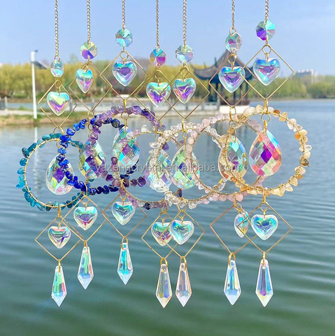 Suncatcher Janela Pendurado Árvore da Vida Chip Chakra Pedras Em Forma De Coração Bola De Cristal Prisma Pingente Espelho Retrovisor Carro Charme